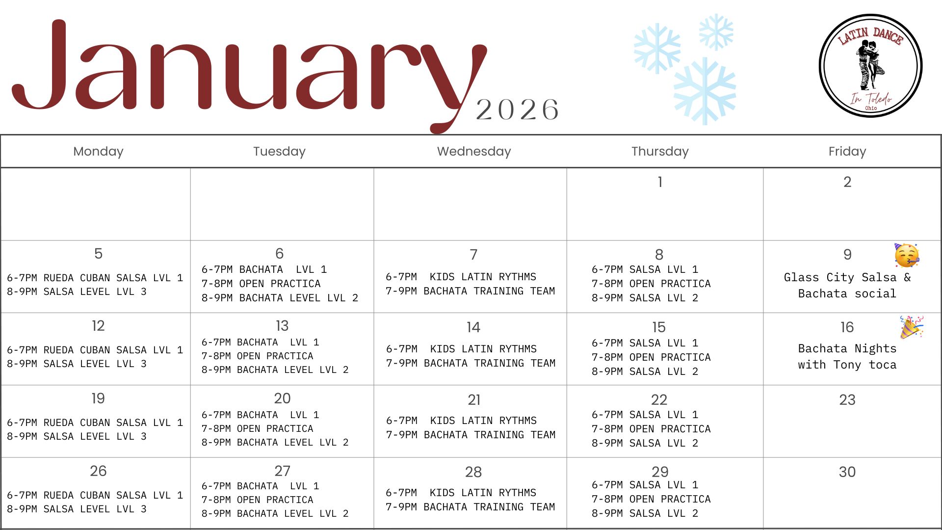 Dive into the fun at our Salsa and Bachata events and socials! Perfect for all levels, from beginners to advanced. Enjoy monthly our montly Salsa and Bachata in Toledo. Connect, learn, and celebrate the joy of Latin Dances. Check our calendar and join us on the dance floor!