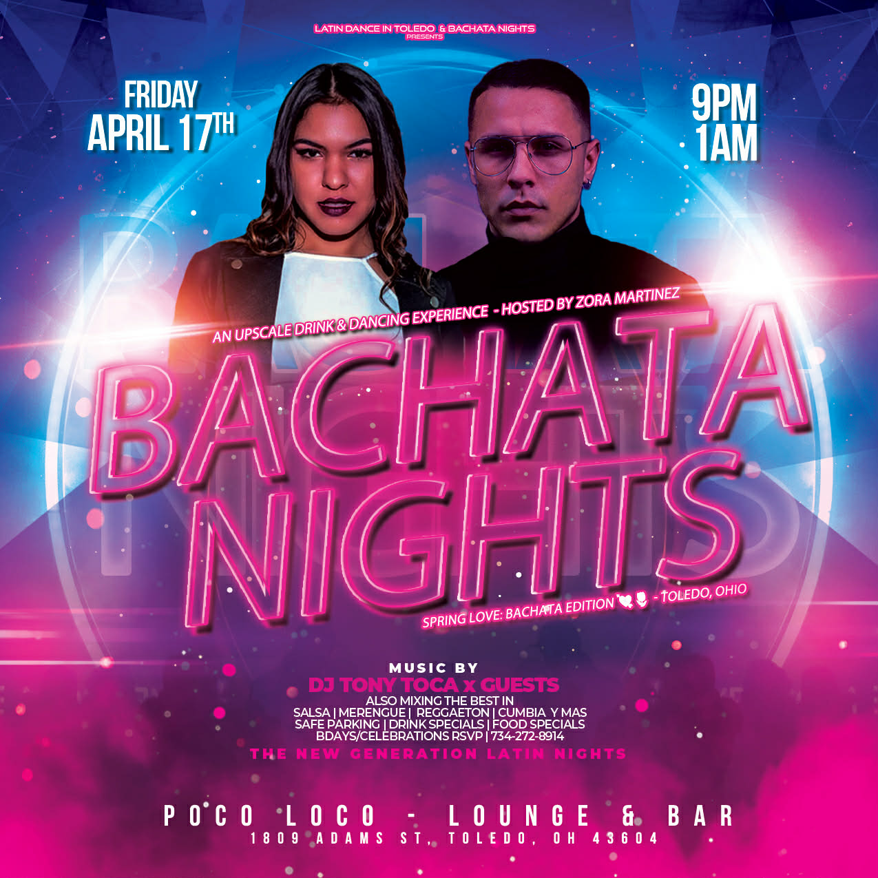 Join us for a fun night of Latin Dance in Toledo with Salsa and Bachata music playing!