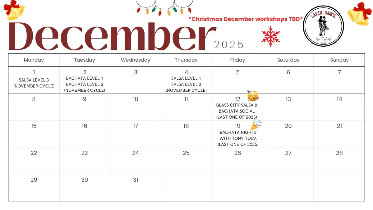 Dive into the fun at our Salsa and Bachata events and socials! Perfect for all levels, from beginners to advanced. Enjoy monthly our montly Salsa and Bachata in Toledo. Connect, learn, and celebrate the joy of Latin Dances. Check our calendar and join us on the dance floor!