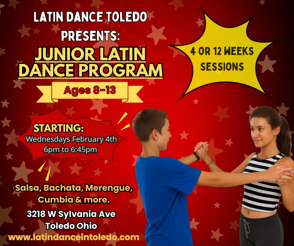 We are excited to introduce our Junior Latin Dance Program, designed for kids and pre-teens to stay active while learning fun, confidence-building, life-lasting skills through dance. Students will learn Salsa, Bachata, Merengue, Cumbia, and more while developing coordination, musicality, teamwork, and discipline in a positive and supportive environment.