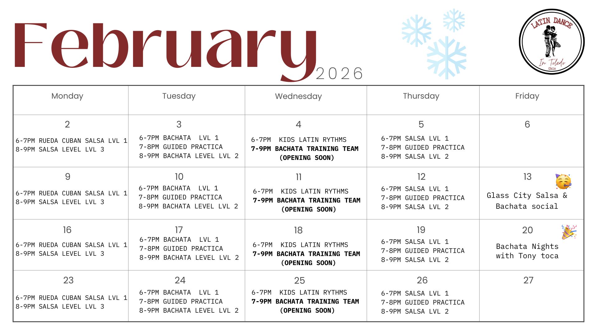 Dive into the fun at our Salsa and Bachata events and socials! Perfect for all levels, from beginners to advanced. Enjoy monthly our montly Salsa and Bachata in Toledo. Connect, learn, and celebrate the joy of Latin Dances. Check our calendar and join us on the dance floor!